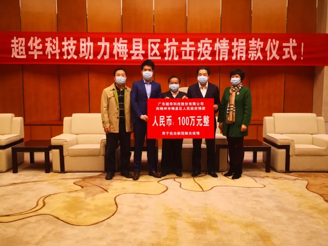 當(dāng)前,新型冠狀病毒感染肺炎疫情防控斗爭已進入攻堅期,為助力打贏疫情防控戰(zhàn),超華科技除在深圳市梅縣商會捐資20萬元購買疫情防控物資外,追加捐資100萬元助力梅縣區(qū)抗擊疫情, “疫”不容辭履行社會責(zé)任。